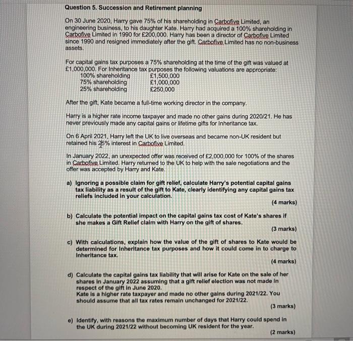 Solved Question 5 Succession And Retirement Planning On 30 Chegg Com